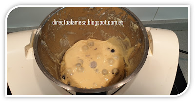 Ponemos el aceite de oliva o la mantequilla (80 ml.) y la leche. Mezclamos 10 segundos a velocidad 6.